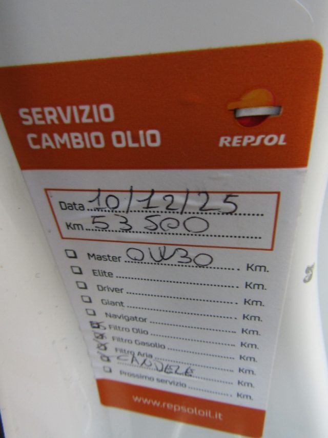 ULTIMO SERVICE DI MANUTENZIONE CORRETTAMENTE ESEGUITO A KM 53.500 IN DATA 10.12.2025; NELLA STESSA DATA E' STATA SOSTITUITA LA CINGHIA DI DISTRIBUZIONE COMPLETA, LA POMPA DELL' ACQUA E LE CANDELE (IL TUTTO CON RICEVUTA DIMOSTRABILE)