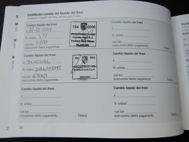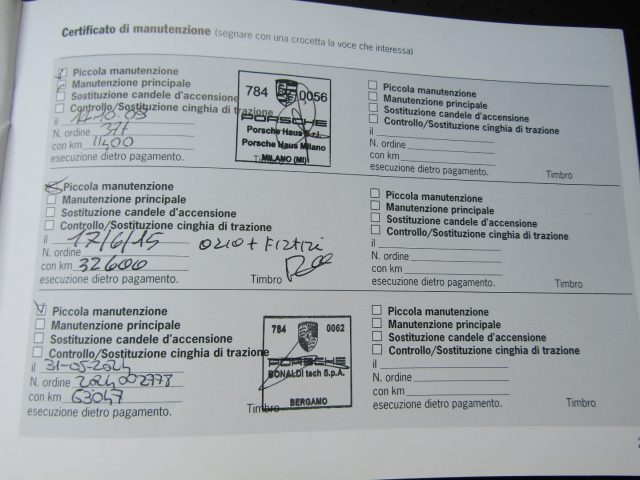 APPENA ESEGUITO TAGLIANDO COMPLETO CON FATTURA DIMOSTRABILE PRESSO PORSCHE CASA MADRE